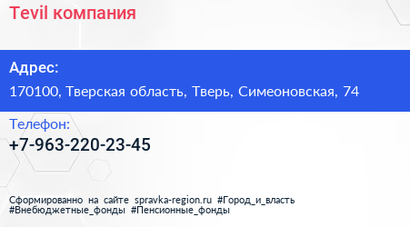 Tevil, компания по адресу 170100, Тверская область, Тверь, Симеоновская, 74 в дальнейшем Организация, размещена в следующих категориях:
