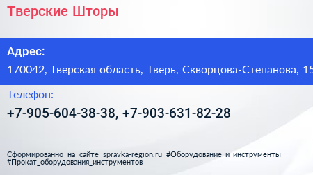 Тверские Шторы по адресу 170042, Тверская область, Тверь, Скворцова-Степанова, 15 в дальнейшем Организация, размещена в следующих категориях: