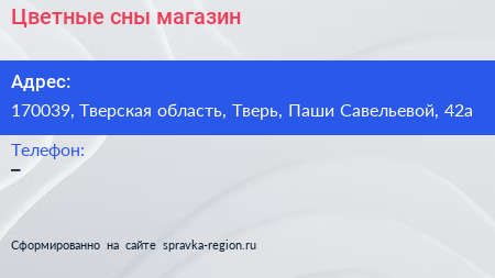 Цветные сны, магазин по адресу 170039, Тверская область, Тверь, Паши Савельевой, 42а в дальнейшем Организация, размещена в следующих категориях:
