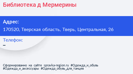 Библиотека, д. Мермерины по адресу 170520, Тверская область, Тверь, Центральная, 26 в дальнейшем Организация, размещена в следующих категориях: