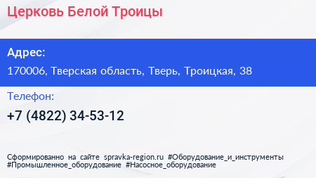 Церковь Белой Троицы по адресу 170006, Тверская область, Тверь, Троицкая, 38 в дальнейшем Организация, размещена в следующих категориях:
