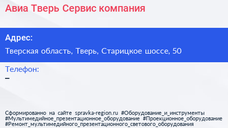 Авиа-Тверь-Сервис, компания по адресу Тверская область, Тверь, Старицкое шоссе, 50 в дальнейшем Организация, размещена в следующих категориях: