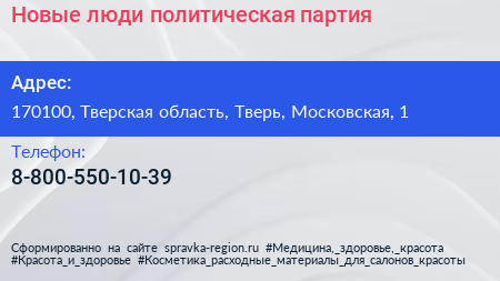 Новые люди, политическая партия по адресу 170100, Тверская область, Тверь, Московская, 1 в дальнейшем Организация, размещена в следующих категориях: