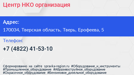 Центр НКО, организация по адресу 170034, Тверская область, Тверь, Ерофеева, 5 в дальнейшем Организация, размещена в следующих категориях: