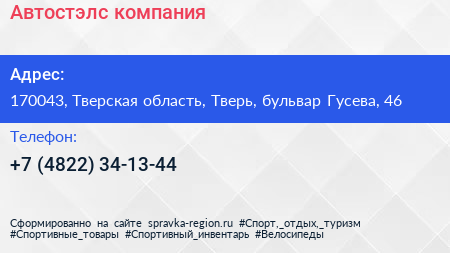 Автостэлс, компания по адресу 170043, Тверская область, Тверь, бульвар Гусева, 46 в дальнейшем Организация, размещена в следующих категориях: