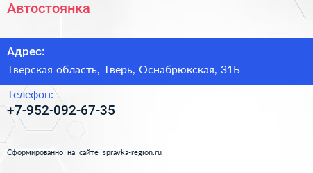 Автостоянка по адресу Тверская область, Тверь, Оснабрюкская, 31Б в дальнейшем Организация, размещена в следующих категориях: