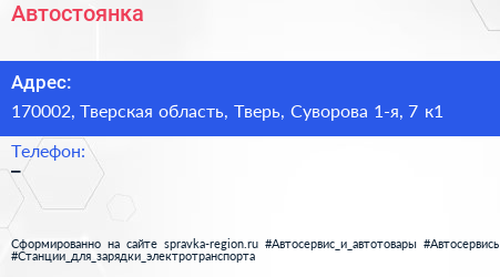 Автостоянка по адресу 170002, Тверская область, Тверь, Суворова 1-я, 7 к1 в дальнейшем Организация, размещена в следующих категориях: