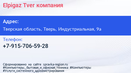 Elpigaz Tver, компания по адресу Тверская область, Тверь, Индустриальная, 9а в дальнейшем Организация, размещена в следующих категориях: