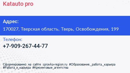 Katauto.pro по адресу 170027, Тверская область, Тверь, Освобождения, 199 в дальнейшем Организация, размещена в следующих категориях: