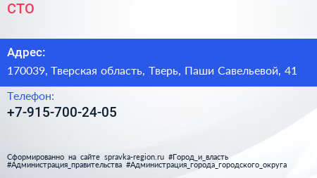 СТО по адресу 170039, Тверская область, Тверь, Паши Савельевой, 41 в дальнейшем Организация, размещена в следующих категориях:
