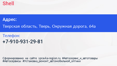 Shell по адресу Тверская область, Тверь, Окружная дорога, 64а в дальнейшем Организация, размещена в следующих категориях: