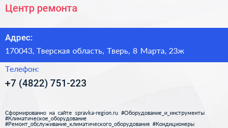 Центр ремонта по адресу 170043, Тверская область, Тверь, 8 Марта, 23ж в дальнейшем Организация, размещена в следующих категориях: