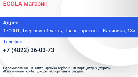 ECOLA, магазин по адресу 170001, Тверская область, Тверь, проспект Калинина, 13а в дальнейшем Организация, размещена в следующих категориях: