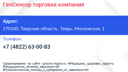 ГеоСенсор, торговая компания по адресу 170100, Тверская область, Тверь, Московская, 1 в дальнейшем Организация, размещена в следующих категориях: