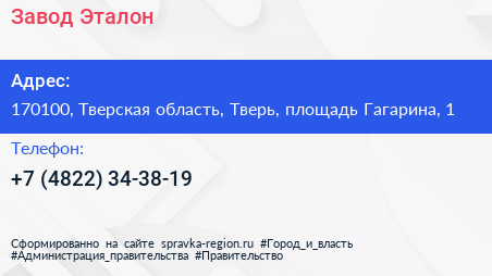Завод Эталон по адресу 170100, Тверская область, Тверь, площадь Гагарина, 1 в дальнейшем Организация, размещена в следующих категориях: