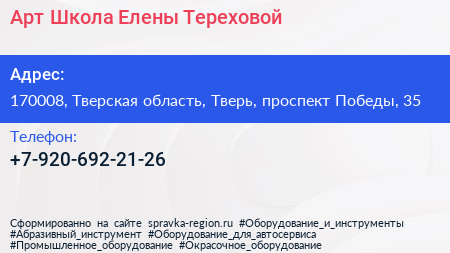 Арт-Школа Елены Тереховой по адресу 170008, Тверская область, Тверь, проспект Победы, 35 в дальнейшем Организация, размещена в следующих категориях: