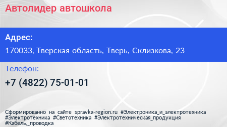 Автолидер, автошкола по адресу 170033, Тверская область, Тверь, Склизкова, 23 в дальнейшем Организация, размещена в следующих категориях: