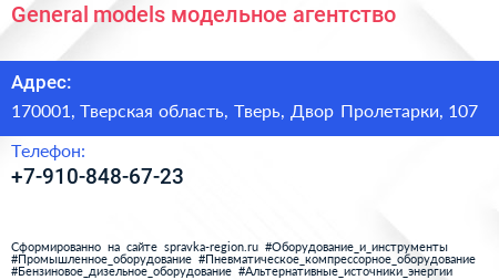 General models, модельное агентство по адресу 170001, Тверская область, Тверь, Двор Пролетарки, 107 в дальнейшем Организация, размещена в следующих категориях:
