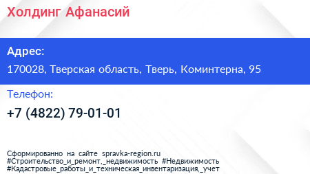 Холдинг Афанасий по адресу 170028, Тверская область, Тверь, Коминтерна, 95 в дальнейшем Организация, размещена в следующих категориях: