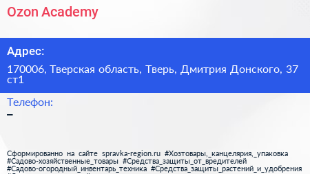 Ozon Academy по адресу 170006, Тверская область, Тверь, Дмитрия Донского, 37 ст1 в дальнейшем Организация, размещена в следующих категориях: