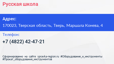Русская школа по адресу 170023, Тверская область, Тверь, Маршала Конева, 4 в дальнейшем Организация, размещена в следующих категориях: