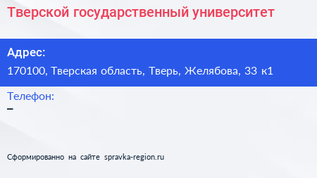 Тверской государственный университет по адресу 170100, Тверская область, Тверь, Желябова, 33 к1 в дальнейшем Организация, размещена в следующих категориях: