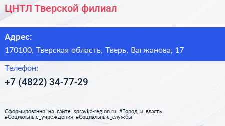 ЦНТЛ, Тверской филиал по адресу 170100, Тверская область, Тверь, Вагжанова, 17 в дальнейшем Организация, размещена в следующих категориях: