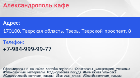 Александрополь, кафе по адресу 170100, Тверская область, Тверь, Тверской проспект, 8 в дальнейшем Организация, размещена в следующих категориях: