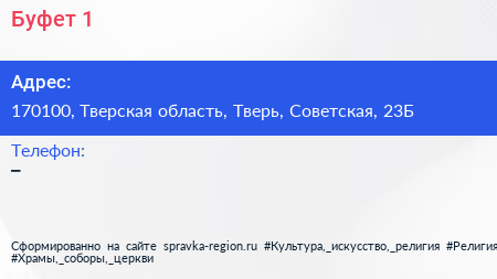 Буфет №1 по адресу 170100, Тверская область, Тверь, Советская, 23Б в дальнейшем Организация, размещена в следующих категориях: