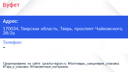 Буфет по адресу 170034, Тверская область, Тверь, проспект Чайковского, 28/2а в дальнейшем Организация, размещена в следующих категориях: