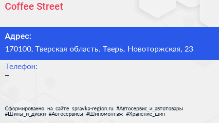 Coffee Street по адресу 170100, Тверская область, Тверь, Новоторжская, 23 в дальнейшем Организация, размещена в следующих категориях: