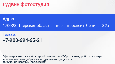 Гудвин, фотостудия по адресу 170023, Тверская область, Тверь, проспект Ленина, 32а в дальнейшем Организация, размещена в следующих категориях: