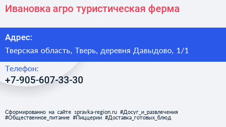 Ивановка, агро-туристическая ферма по адресу Тверская область, Тверь, деревня Давыдово, 1/1 в дальнейшем Организация, размещена в следующих категориях: