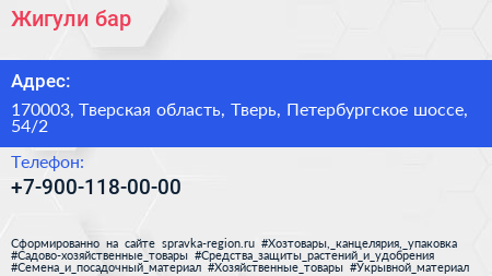Жигули, бар по адресу 170003, Тверская область, Тверь, Петербургское шоссе, 54/2 в дальнейшем Организация, размещена в следующих категориях: