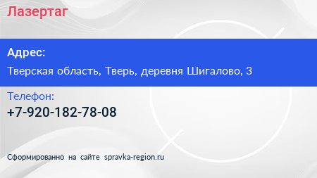 Лазертаг по адресу Тверская область, Тверь, деревня Шигалово, 3 в дальнейшем Организация, размещена в следующих категориях: