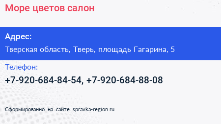 Море цветов, салон по адресу Тверская область, Тверь, площадь Гагарина, 5 в дальнейшем Организация, размещена в следующих категориях: