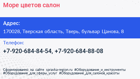 Море цветов, салон по адресу 170028, Тверская область, Тверь, бульвар Цанова, 8 в дальнейшем Организация, размещена в следующих категориях: