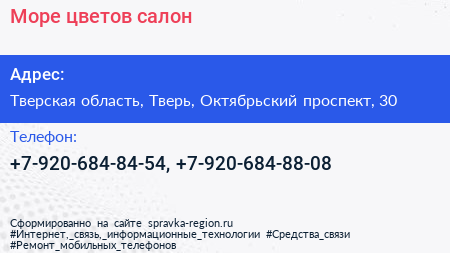 Море цветов, салон по адресу Тверская область, Тверь, Октябрьский проспект, 30 в дальнейшем Организация, размещена в следующих категориях: