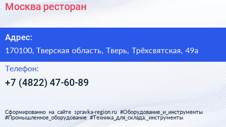Москва, ресторан по адресу 170100, Тверская область, Тверь, Трёхсвятская, 49а в дальнейшем Организация, размещена в следующих категориях: