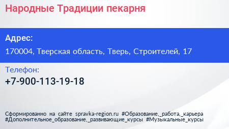 Народные Традиции, пекарня по адресу 170004, Тверская область, Тверь, Строителей, 17 в дальнейшем Организация, размещена в следующих категориях: