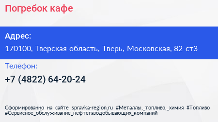Погребок, кафе по адресу 170100, Тверская область, Тверь, Московская, 82 ст3 в дальнейшем Организация, размещена в следующих категориях: