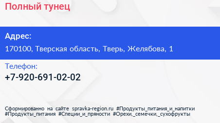 Полный тунец по адресу 170100, Тверская область, Тверь, Желябова, 1 в дальнейшем Организация, размещена в следующих категориях: