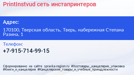 PrintInstvud, сеть инстапринтеров по адресу 170100, Тверская область, Тверь, набережная Степана Разина, 1 в дальнейшем Организация, размещена в следующих категориях: