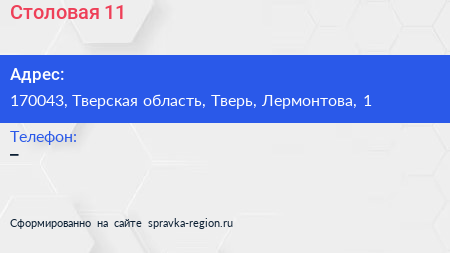 Столовая №11 по адресу 170043, Тверская область, Тверь, Лермонтова, 1 в дальнейшем Организация, размещена в следующих категориях: