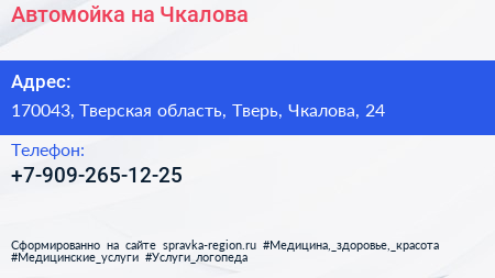 Автомойка на Чкалова по адресу 170043, Тверская область, Тверь, Чкалова, 24 в дальнейшем Организация, размещена в следующих категориях: