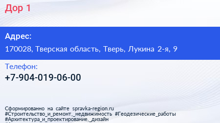 Дор-1 по адресу 170028, Тверская область, Тверь, Лукина 2-я, 9 в дальнейшем Организация, размещена в следующих категориях: