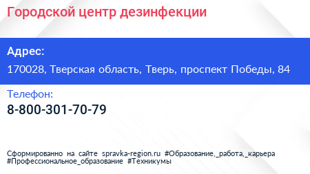 Городской центр дезинфекции по адресу 170028, Тверская область, Тверь, проспект Победы, 84 в дальнейшем Организация, размещена в следующих категориях: