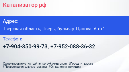Катализатор.рф по адресу Тверская область, Тверь, бульвар Цанова, 6 ст1 в дальнейшем Организация, размещена в следующих категориях: