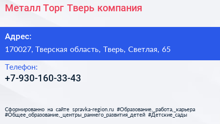 Металл Торг Тверь, компания по адресу 170027, Тверская область, Тверь, Светлая, 65 в дальнейшем Организация, размещена в следующих категориях: