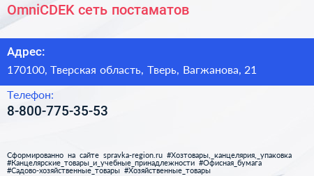 OmniCDEK, сеть постаматов по адресу 170100, Тверская область, Тверь, Вагжанова, 21 в дальнейшем Организация, размещена в следующих категориях: